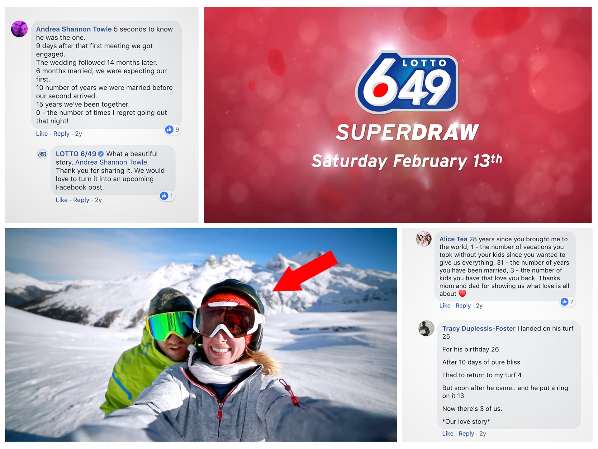 Almost three million impressions and views topping two million made this LOTTO 649’s most successful social campaign to date and proved to a skeptical client that our audience is willing to share more online and contribute to 649’s story.