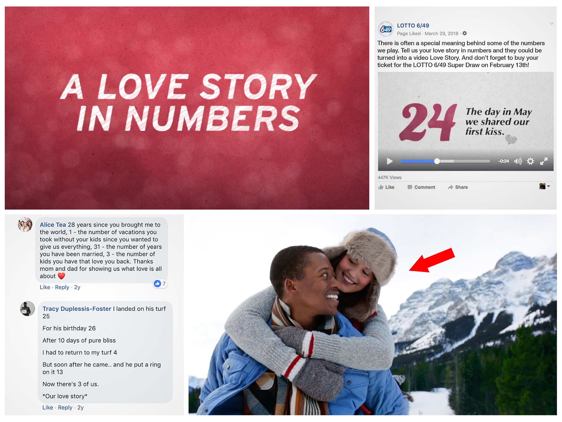 So what does the lottery have to do with Valentine's day? We based the idea on the insight that people pick lottery numbers that have special meaning so we asked our Facebook audience “Is there a love story behind your numbers?"
